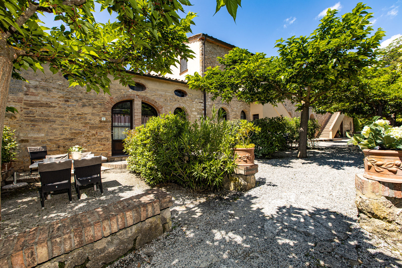 La Tenuta è circondata da 5 ettari di parco con piantagioni di olivi ed alberi secolari, dove potrete trovare il campo da tennis e la piscina(25m x 12,5m) ) con zona solarium ed una suggestiva vista panoramica sulle colline Toscane.